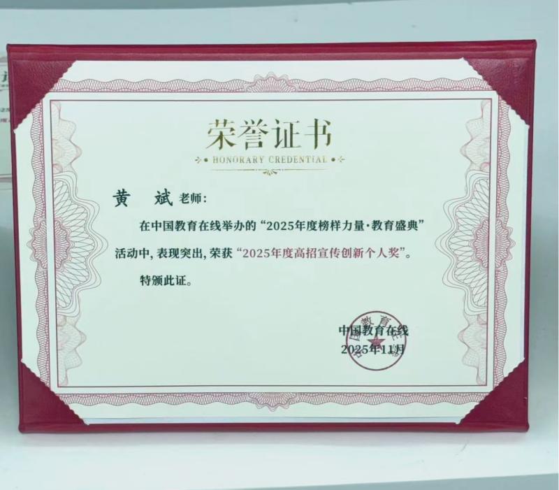 这一殊荣不仅是对黄斌老师个人在高招宣传工作中的高度认可,更是彰显了学校在招生宣传创新方面的坚定决心与显著成效。其成功经验将激励更多的教育工作者勇于创新、敢于实践,为学校的招生工作注入新的活力与动力。