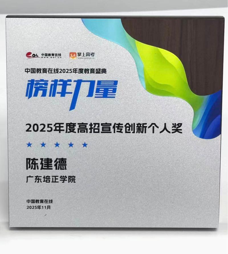 广东培正学院陈建德老师荣获“2025年度高招宣传创新个人”称号