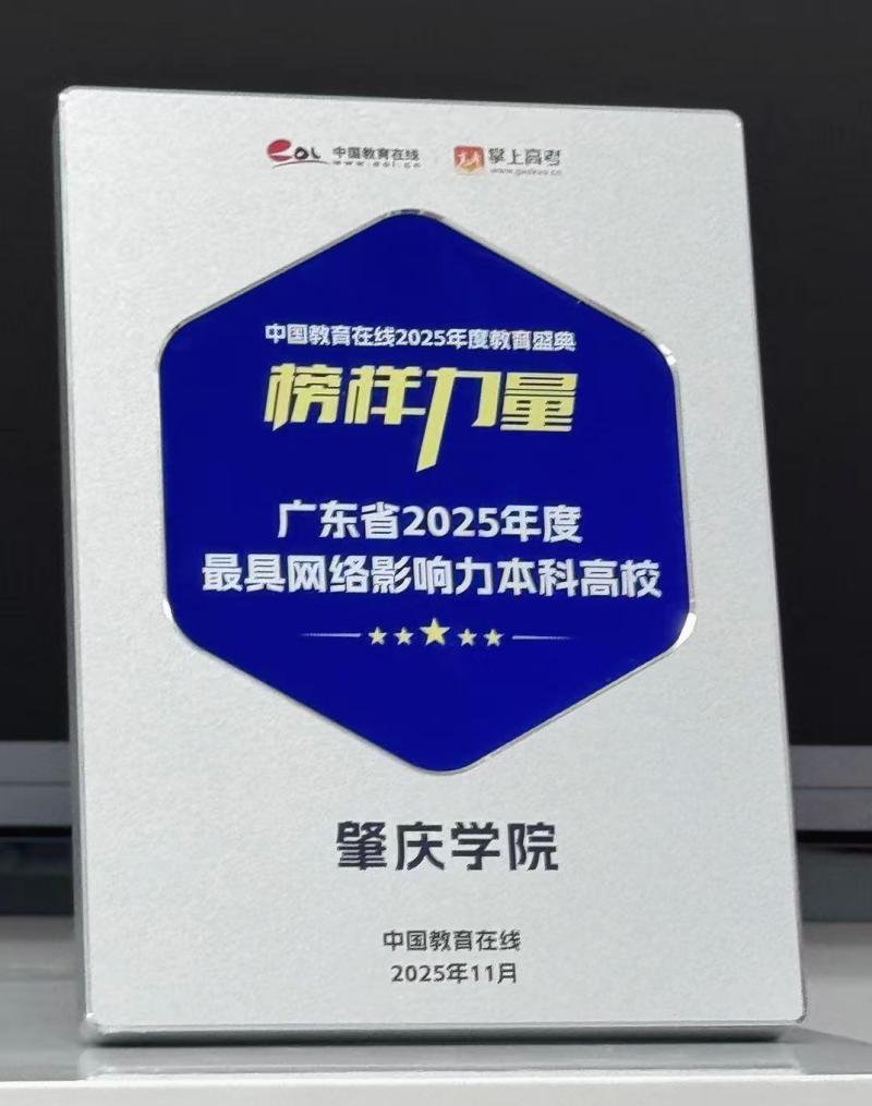 近日,中国教育在线“榜样力量·2025年度教育盛典”优秀案例名单公布。肇庆学院凭借极具创新性与前瞻性的招生宣传策略,以及扎实过硬的宣传执行实力,从众多高校中突围,获评“广东省2025年度最具网络影响力本科高校”。