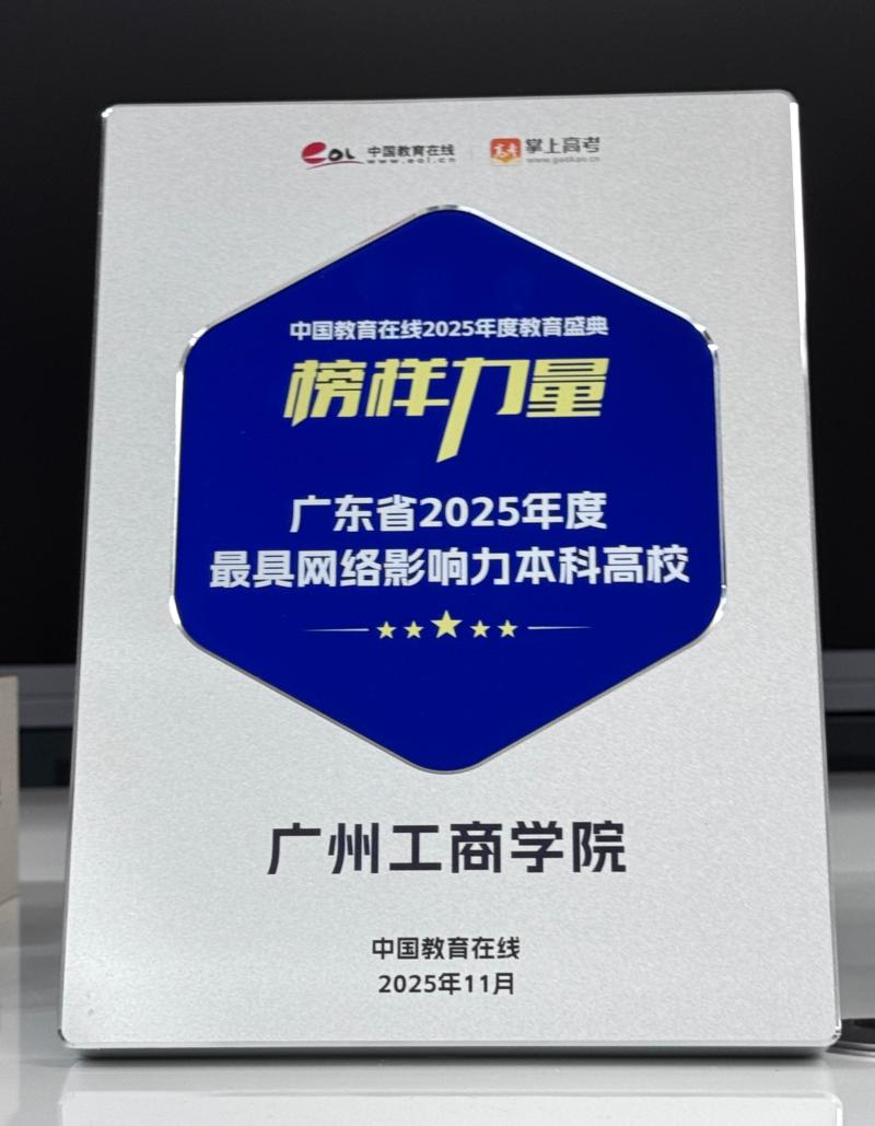 近日,中国教育在线“榜样力量·2025年度教育盛典”优秀案例名单公布。广州工商学院凭借极具创新性与前瞻性的招生宣传策略,以及扎实过硬的宣传执行实力,从众多高校中突围,获评“广东省2025年度最具网络影响力本科高校”。