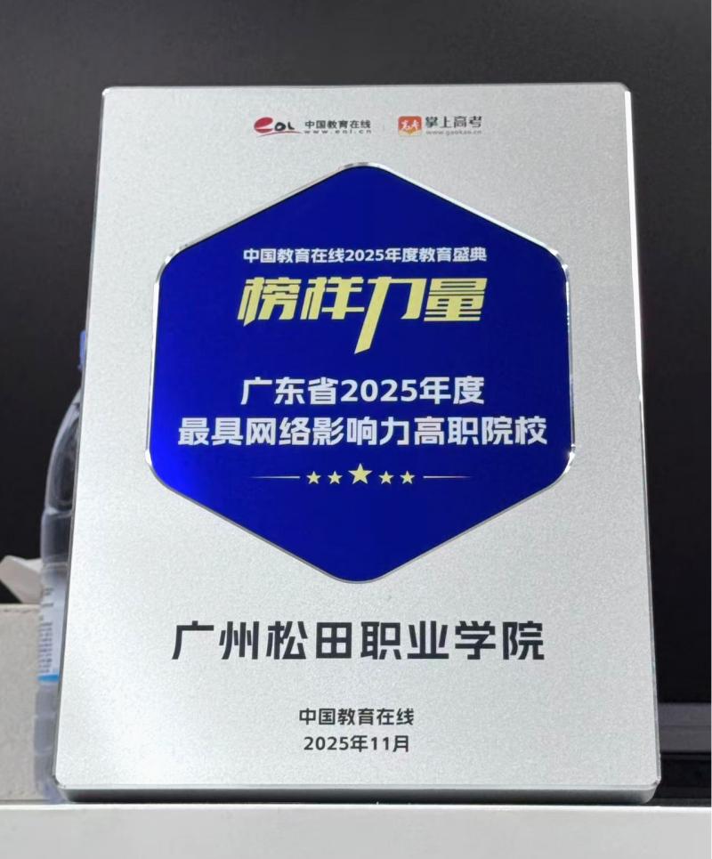 近日,中国教育在线“榜样力量·2025年度教育盛典”优秀案例名单公布。广州松田职业学院凭借极具创新性与前瞻性的招生宣传策略,以及扎实过硬的宣传执行实力,从众多高校中突围,获评“广东省2025年度最具网络影响力高职院校”。
