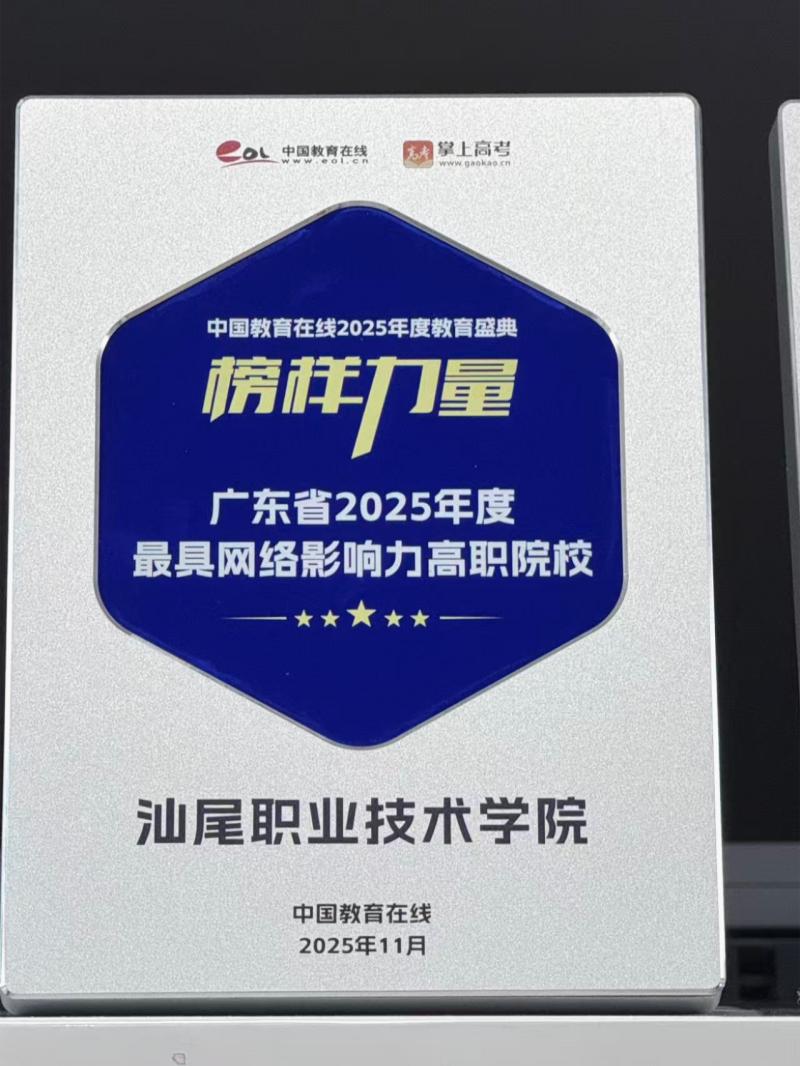 此奖项不仅是对汕尾职业技术学院招生宣传工作的高度肯定,更彰显了汕尾职业技术学院在教育数字传播浪潮中,引领高校网络形象塑造、信息传播新范式的卓越能力与突出贡献。