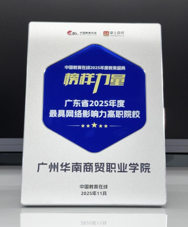 此奖项不仅是对广州华南商贸职业学院招生宣传工作的高度肯定,更彰显了广州华南商贸职业学院在教育数字传播浪潮中,引领高校网络形象塑造、信息传播新范式的卓越能力与突出贡献。