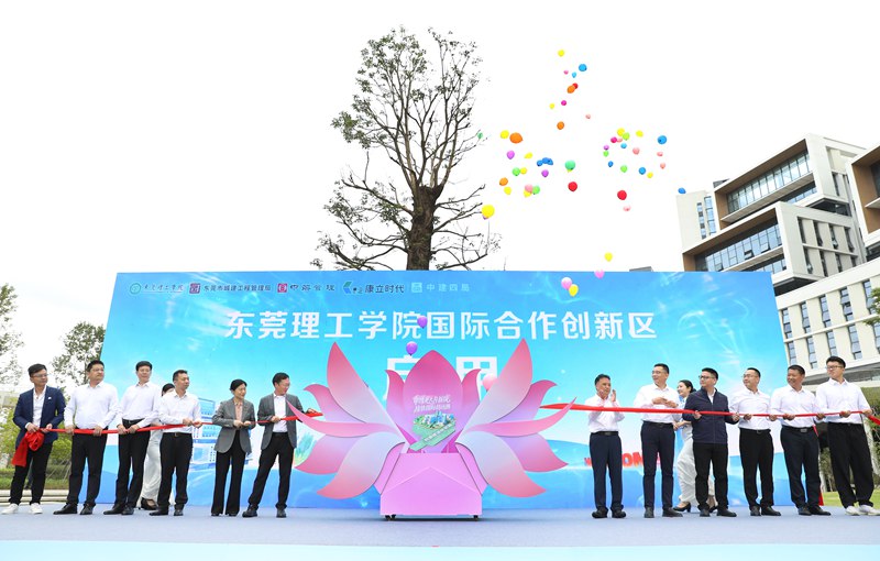 活动期间,市城建工程管理局有关负责同志向东莞理工学院交付象征东莞理工学院国际合作创新区的“金钥匙”。伴随着“莞香花开”装置打开,国际合作创新区正式启用。