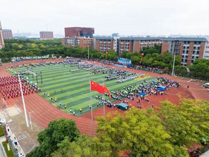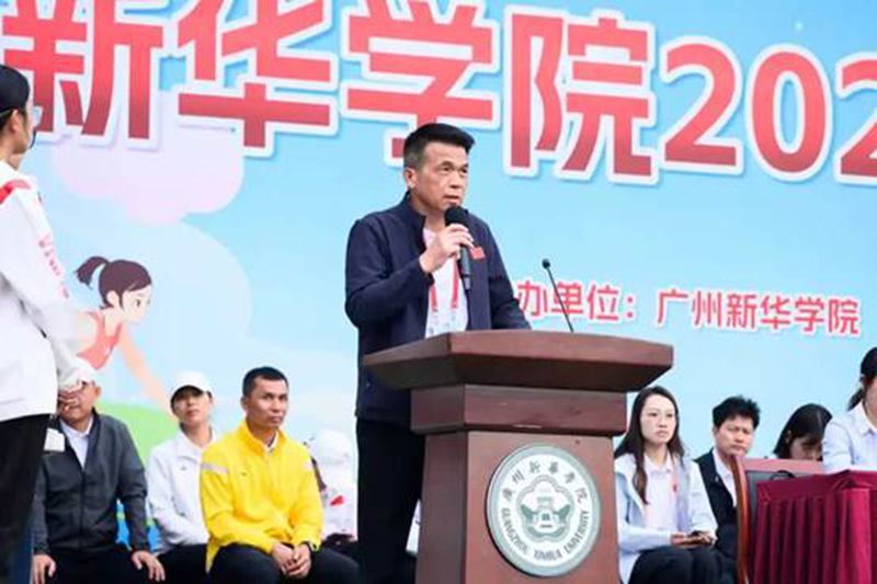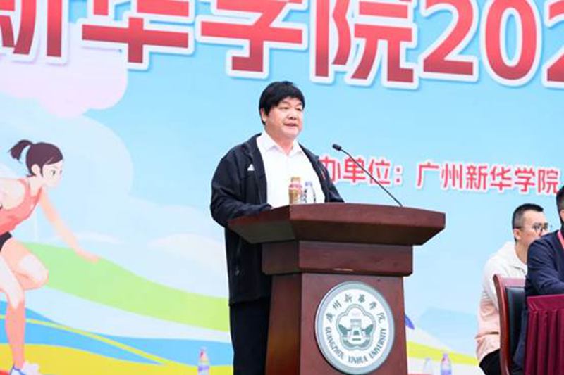 学校校长王庭槐在致辞中回顾了学校二十年发展历程与体育精神的内在契合。他指出,学校全面贯彻党的教育方针,持续完善体育设施、深化教学改革、营造体育文化,切实将“健康第一”理念融入育人全过程。此刻赛场上的青春热情,正与第十五届全运会“激情全运会,活力大湾区”的时代强音交相辉映,彰显了团结协作、勇于拼搏的体育精神。他期望运动员发扬风格、赛出水平;裁判员和工作人员公正履职、保障赛事;广大师生将赛场精神融入日常,以运动促发展。最后,他勉励大家以二十周年为新起点,将体育激情转化为推动学校高质量发展的持久动力。