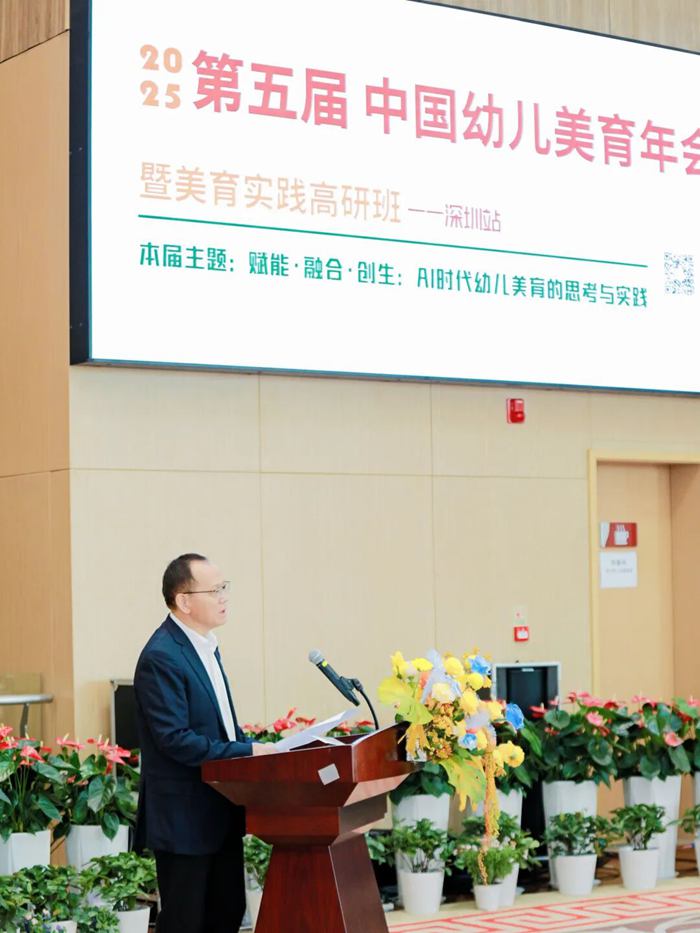 赖雪梅为开幕式致辞,深入阐释国家“以美育人、以文化人”战略部署,强调人民美术出版社在新时代美育工作中的使命担当。她表示,深圳作为中国特色社会主义先行示范区,其创新基因与美育年会的探索精神高度契合,期待在此搭建更高质量的学术交流平台,助力中国幼儿美育事业跨越式发展。