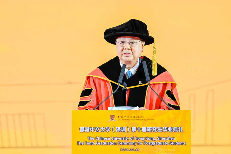 鹏城深秋金风送爽,神仙湖畔硕果盈枝。11月16日上午,香港中文大学(深圳)第十届研究生毕业典礼在礼文堂举行,逾1600名研究生身着学袍,即将告别神仙湖畔的学术殿堂,奔赴广阔天地,以创新为笔,续写青春与理想的崭新华章。香港特别行政区前政务司司长、大紫荆勋贤张建宗教授,当代著名哲学家、作家周国平教授作为特邀嘉宾发表了精彩演讲,香港中文大学(深圳)校长徐扬生教授以及教授代表、毕业生亲友与各界嘉宾齐聚一堂,共同见证这一荣耀时刻,勉励学子以智慧启航,以勇气立于时代潮头,书写属于新一代的辉煌篇章。