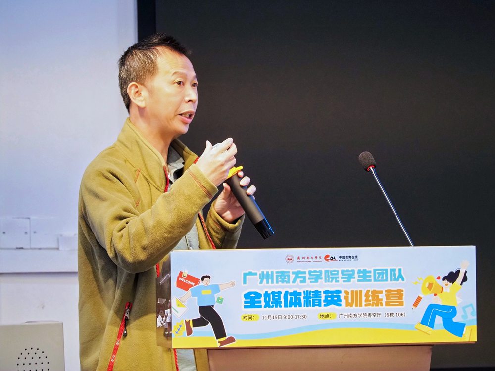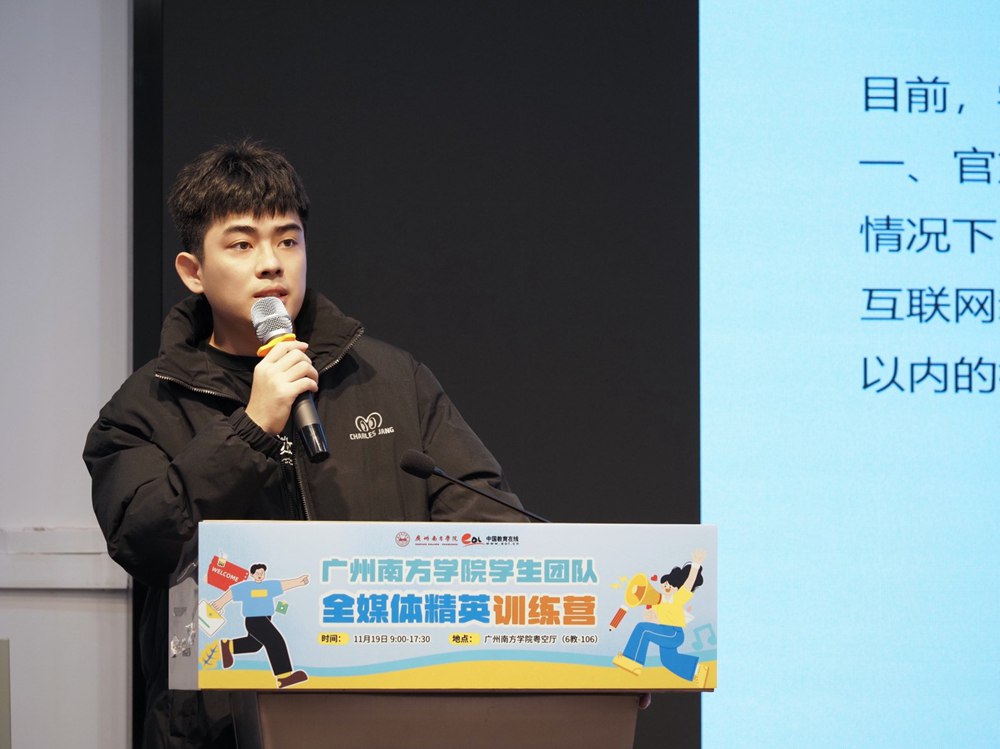 11月19日,一股冷空气为广州带来断崖式降温,寒意凛冽。然而在广州南方学院粤空厅内,却是一派火热景象。由该校与中国教育在线联合举办的“全媒体精英训练营”热烈启幕,容纳300人的大厅座无虚席,用新媒体创作的热情驱散了冬日的清冷,也为校园宣传队伍注入了蓬勃的活力与温暖。