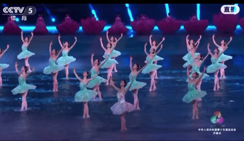 广州大学附属艺术学校15名芭蕾舞专业高一年级女生,与广州芭蕾舞团、香港芭蕾舞团的专业演员共同表演《岭南春早》。她们在环形屏构建的水面上舒展身姿,悬浮舞台的空灵感裹着芭蕾的优雅,让岭南的春意随足尖流转。