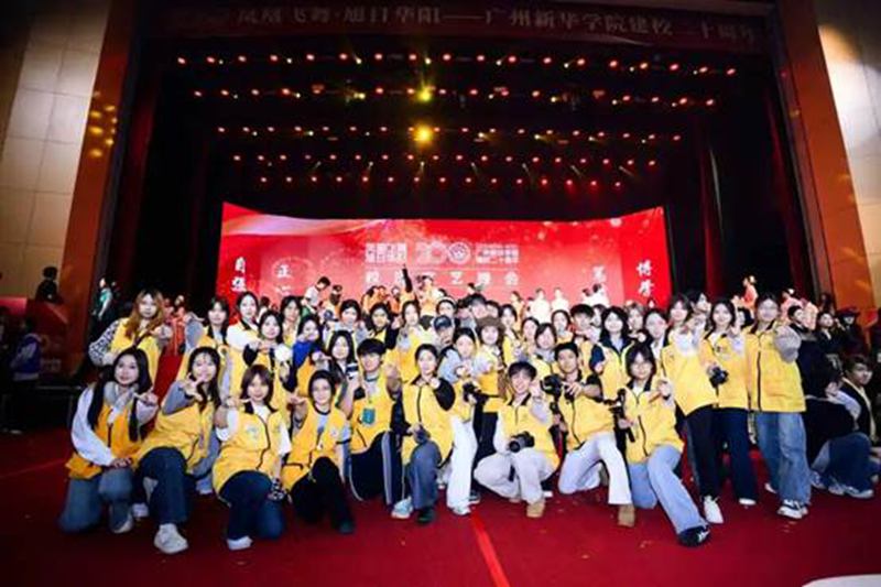 作为此次校庆晚会的志愿者,我主要负责内场指引志愿者的统筹安排。能够亲身见证广州新华学院建校20周年的重要时刻,我深感荣幸。在对接工作中,我有幸结识了许多优秀校友,从他们身上深切感受到了身为新华学子的自豪。这次经历让我更加坚定了深耕专业的决心。最后,衷心祝愿母校如凤凰展翅,前程似锦;如旭日华阳,其道大光!