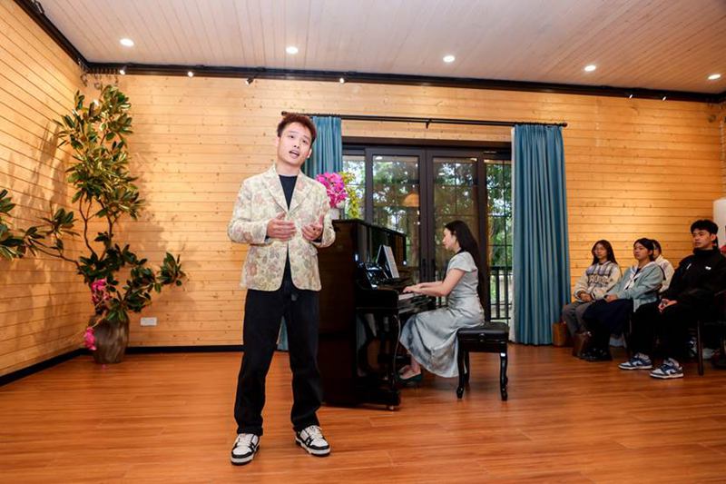 音乐系大学美育教研室副主任杨超对校友廖泽世的即兴演唱印象深刻。作为音乐系首届毕业生,刚从意大利米兰音乐学院学成归来的他,以一曲《我的太阳》展现了扎实的专业素养,也印证了音乐系人才培养的成效。
