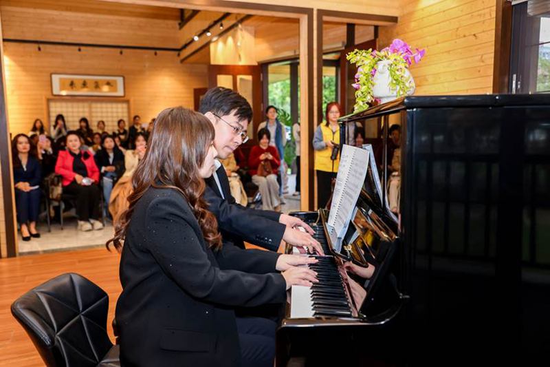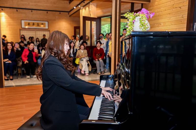 音乐系直属党支部副书记、副主任童秀萍听完音乐会后表示,本次音乐会活动秉承霖霖书院“以美育人”的初心,旨在为返校校友营造温馨的“回家”氛围。音乐会的亮点在于其纯音乐沙龙形式,四位钢琴教师通过“导赏和演奏”的方式,引领观众深入品鉴作品。现场更特邀从意大利归国的首届音乐系校友献唱,彰显了师生同乐、艺术传承的新华特色。