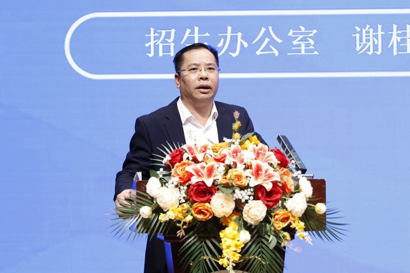 学校党委委员、学生处处长、招生办主任谢桂袖作2025年招生工作总结及2026年工作计划。他指出,2025年学校新生报到率创近新高,本科、专升本、专科报到率均实现增长,优势专业品牌效应显著。同时,他分析了招生工作面临的外部生源竞争、社会认知偏差等挑战,以及内部办学条件、宣传投入等问题,并从加强内涵建设、深化全员宣传、优化专业布局、组建稳定招生队伍等方面,阐述了2026年招生工作计划。