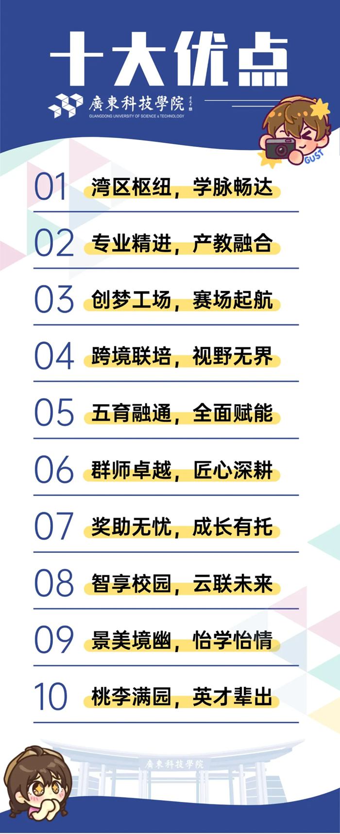 曾经的“我”,是勇立潮头的教育先锋。“我”于2003年经教育部批准设立,2011年升格为本科院校,并更名为“广东科技学院”,2015年获学士学位授予权,2018年通过教育部本科教学工作合格评估,2021年入选广东省硕士学位授予立项建设单位并设立广东省博士工作站,2024年接受教育部新一轮本科教育教学审核评估。