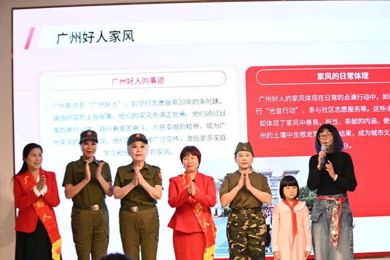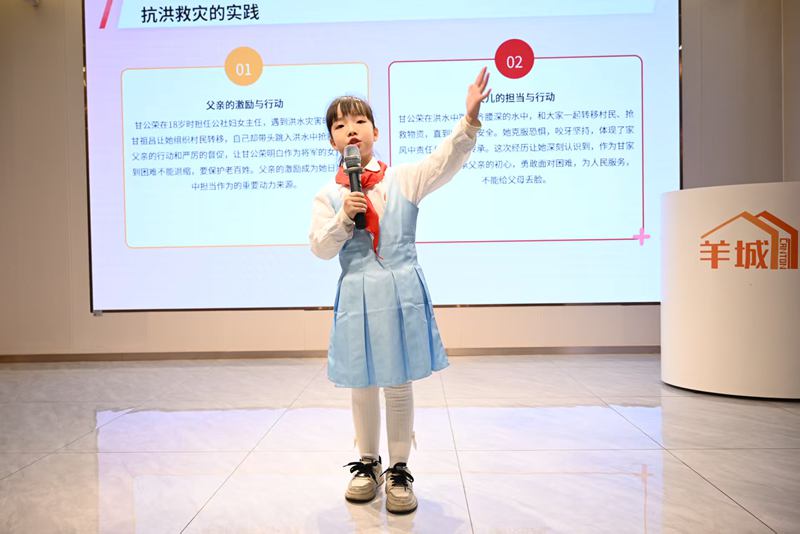 陈丽萍老师结合与甘公荣的交流经历,生动解读家风传承,巧妙搭建了红色传统与现代家庭教育的桥梁。在亲子互动中,抽象的革命精神化为具体的家庭相处之道。在代际交流中,崇高的家风理念变成了可操作的教育方法,为羊城父母提供了可借鉴的家风建设范例。