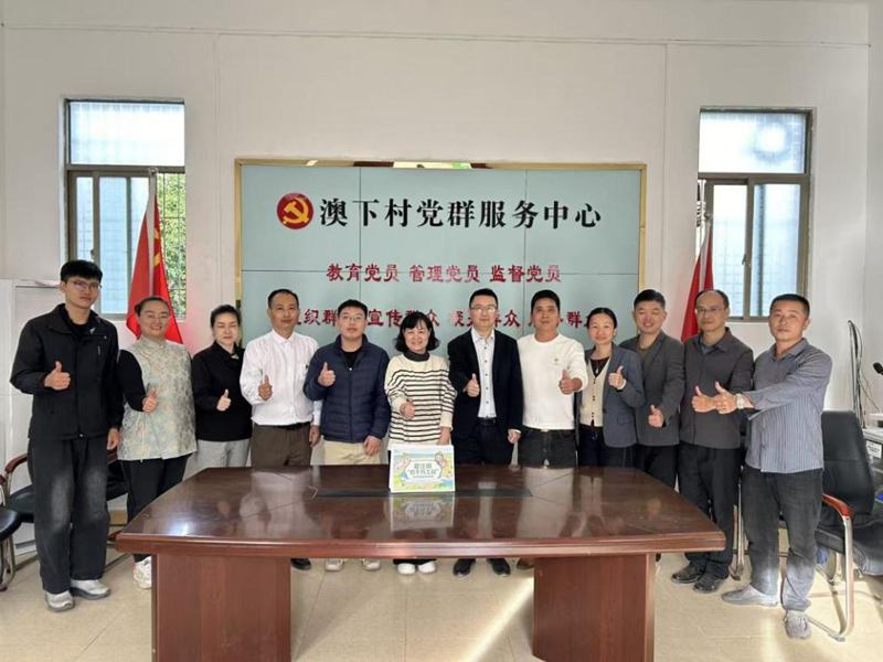 调研结束后,调研组在帮扶重点村澳下村召开座谈会,驻镇帮扶工作队系统介绍了阶段帮扶成效,各方进一步明确了下一步合作机制与重点方向。会上,创意设计与传媒学院(筹)再度向鳌江镇捐赠了100册师生共同编绘的新版《鳌江镇“百千万工程”涂色插画故事集》,以专业设计持续助力乡村文化振兴。