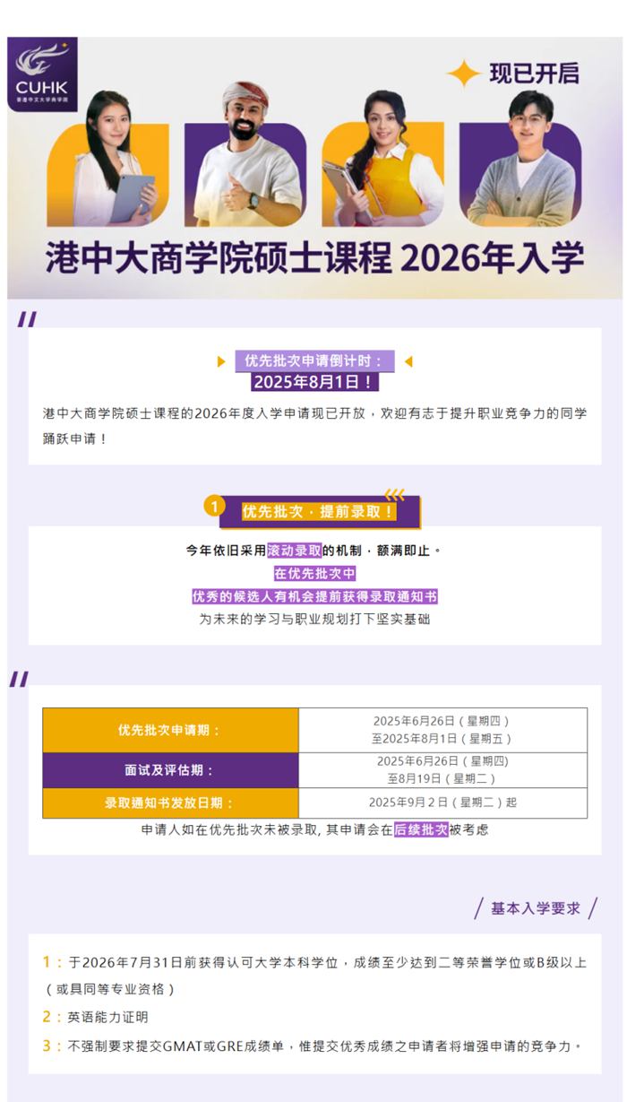 招生简章 | 港中大商学院硕士课程2026年度入学申请现已开启!