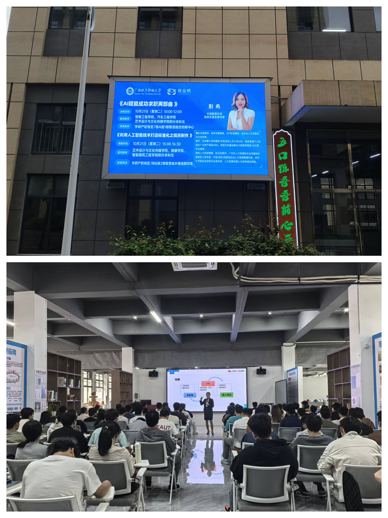 2025.10.21广西城市职业大学诚邀中国教育在线高级生涯导师彭希主题为《AI赋能成功求职两部曲》《利用人工智能赋能简历制作》讲座,解锁成功求职的必胜秘籍,让就业指导更有温度,更有科技力!