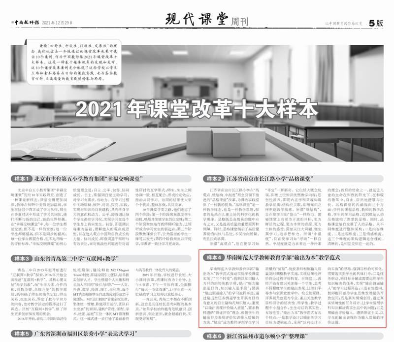 “核心基础·输出为本”教学改革,是由华南师范大学王红教授团队发起的,旨在从教学底层逻辑层面推动教学深层次变革的一个重大项目。据介绍,该项目成果已在全国24个省份、110余所中小学推广应用,引领大批中小学教师的教学范式变革,带动了多个区域课堂教学形态转型。