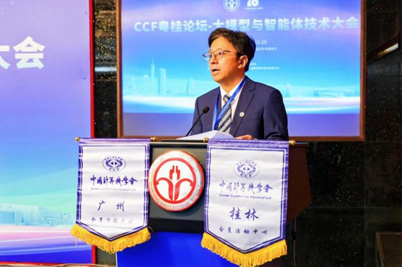 2025年11月29日,由中国计算机学会(CCF)主办,CCF广州、CCF桂林和广东金融学院联合承办的CCF粤桂论坛“大模型与智能体技术大会”在广东金融学院成功召开。本次论坛汇聚了来自国防科技大学、香港城市大学、香港教育大学、武汉大学、中山大学、华南理工大学、华南师范大学、华南农业大学、广东工业大学、桂林电子科技大学、桂林理工大学及产业界的权威专家,以及香港城市大学—医渡科技、北京并行科技、宏景科技、超聚变公司、科学城(广州)数科集团等多家大型国企和上市公司高管,围绕大模型与智能体的技术内核、架构演进与行业落地,展开了一场深度与广度并蓄的学术盛宴。