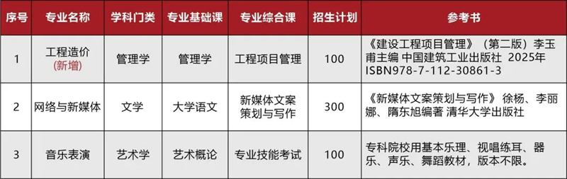 3.工程造价、网络与新媒体、音乐表演3个专业的专业综合课考试类型为校考。
