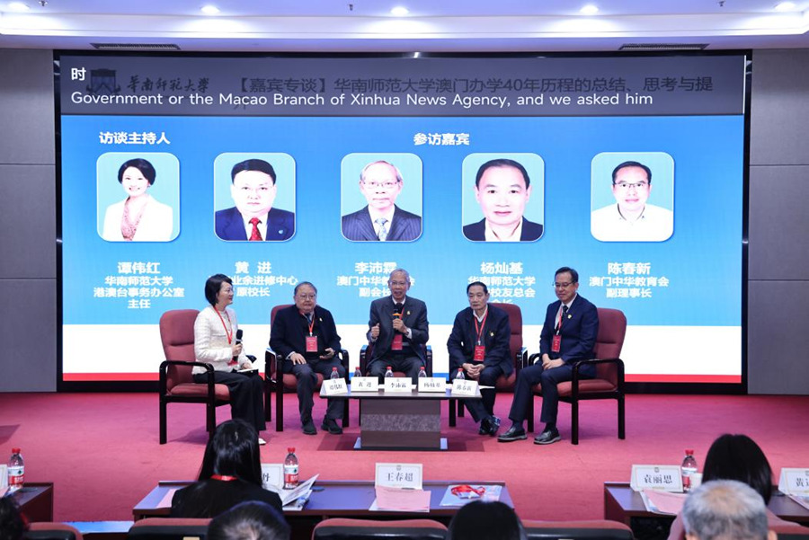 在嘉宾专访环节,几位亲历者深情回顾了华南师大在澳门四十载的办学历程与历史贡献,并就新形势下深化粤港澳教育合作、优化办学模式、提升人才培养质量等议题分享了真知灼见。