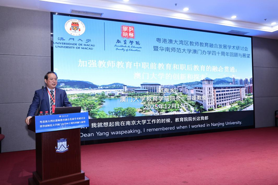 “这一刻,不仅是在回望华南师范大学澳门办学四十载的峥嵘岁月,更是在新的历史起点上共同擘画时代跨境教育的宏伟蓝图。”12月14日,华南师范大学国际会议厅,王春超副校长深情感言。