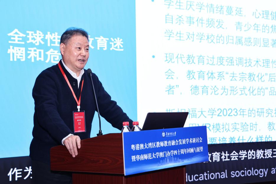 香港大学教育学院院长杨锐教授直面当前师范教育困境,提出从中国教育传统中寻找价值重塑路径。他反思现代生活中西方文化的过度影响,指出全球教育正面临“价值观迷失”的迷茫,强调教师不应仅被视为职业,更应坚守“立德树人”的使命。他呼吁湾区师范教育需融合中西智慧与古今经验,做强自身并向世界输出中国教育的智慧,树立中国教育应有的文化地位,让湾区教育成为世界一流标杆。