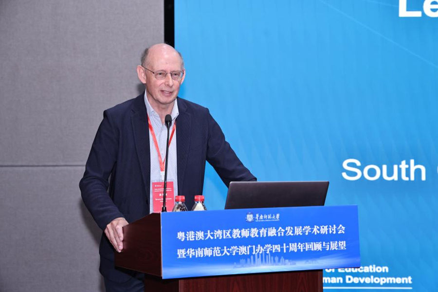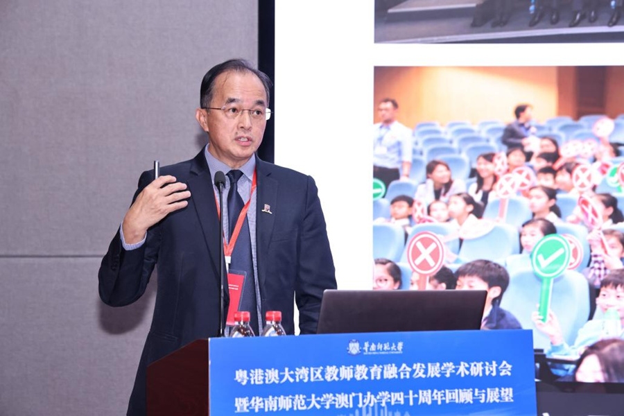 在研讨会的主旨报告环节,5位粤港澳高校专家学者聚焦推动教师教育深度融合的话题,从不同角度建言献策,提出专业见解。