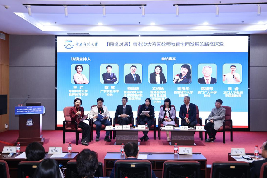 圆桌对话环节,在王红教授主持下,围绕“粤港澳大湾区教师教育协同发展的路径探索”,各界代表各抒己见,碰撞思想火花。