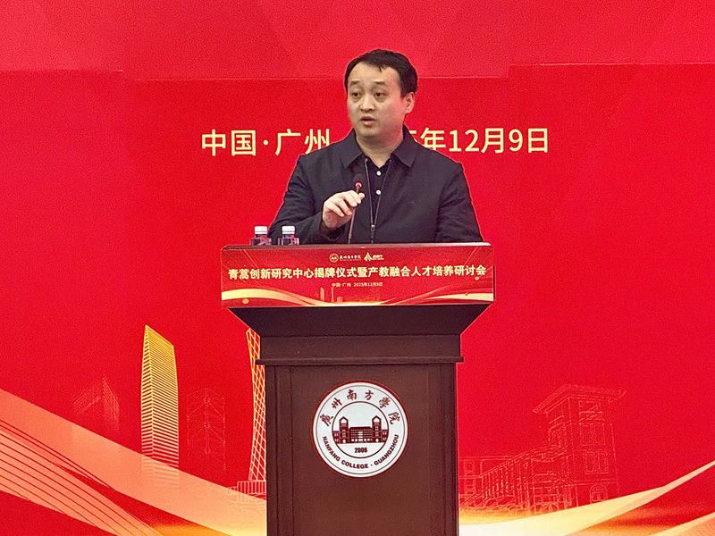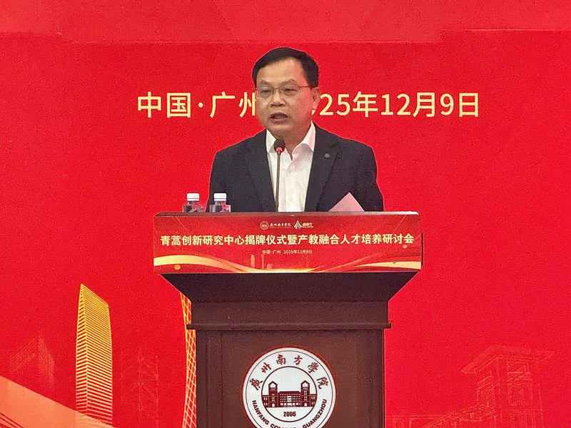 2025年12月9日下午,广州南方学院举行青蒿创新研究中心揭牌仪式暨产教融合人才培养研讨会。学校校长汤涛院士,副校长杨双华院士,副校长龚鸣副教授,广东新南方集团董事长朱拉伊,从化区卫健局副局长张科,以及学校医学部专家委员会主任、广州医科大学原校长王新华教授等嘉宾出席活动,共同见证中医药健康学院青蒿创新研究中心成立。揭牌仪式由学院常务副院长王玉平副教授主持。