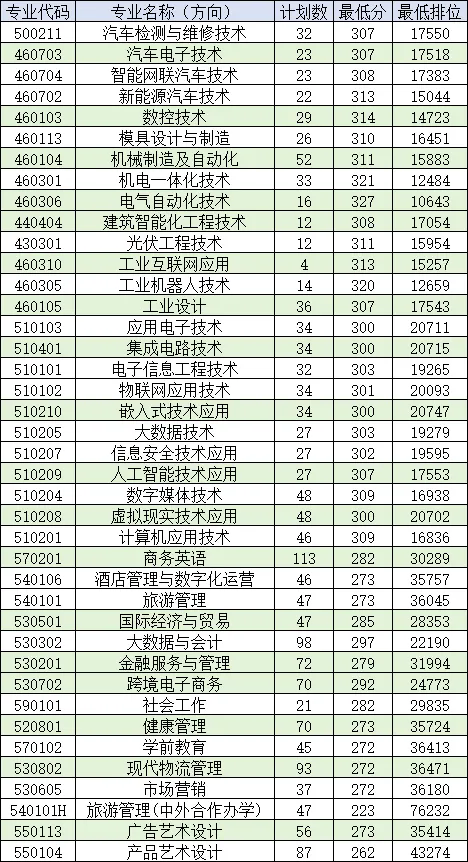 开设53个招生专业:主动适应地方经济社会发展需要,开设专业53个,形成了以“先进制造业专业群为主体,电子信息业和现代服务业专业群为两翼”的专业格局。实行分数优先录取原则,总分排在前面的匹配度高。