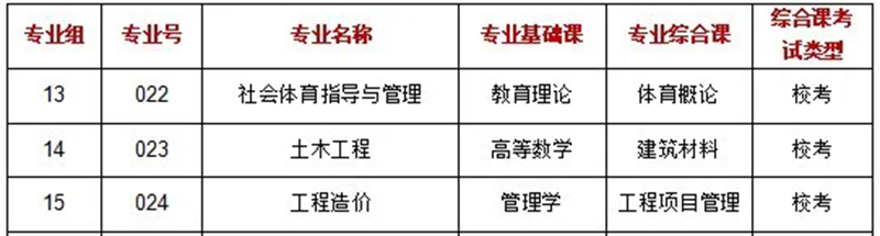 土木工程、工程造价、社会体育指导与管理的专业综合课采用院校自命题方式,考试大纲及参考书目具体如下: