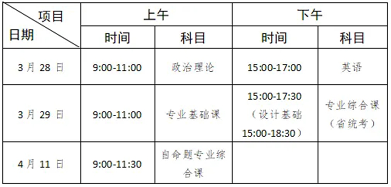 普通专升本招生考试时间为2026年3月28日(星期六)至29日(星期日)两天,我校自命题科目考试时间为2026年4月11日(星期六),具体安排见下表:
