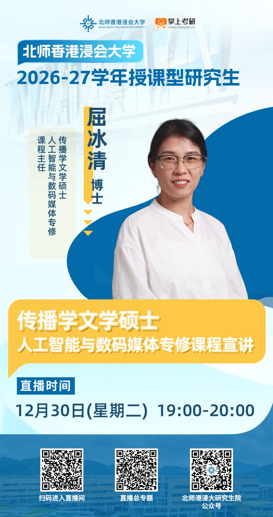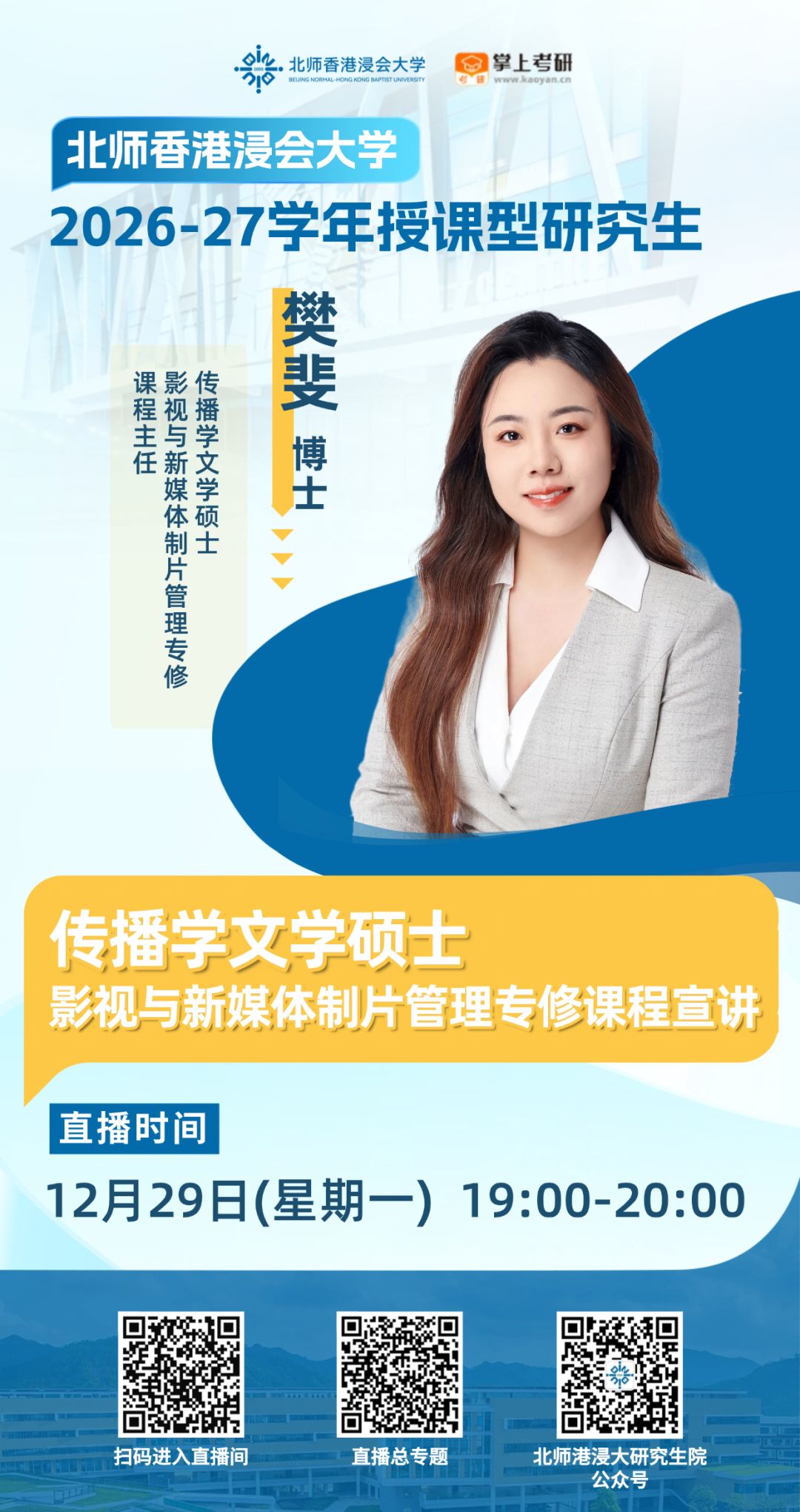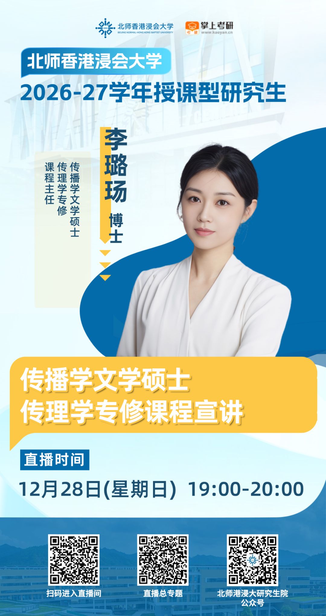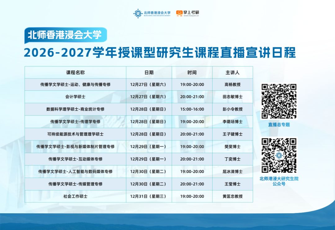 直播预告|2026北师港浸大授课型研究生招生直播宣讲即将开启,我们直播间见!