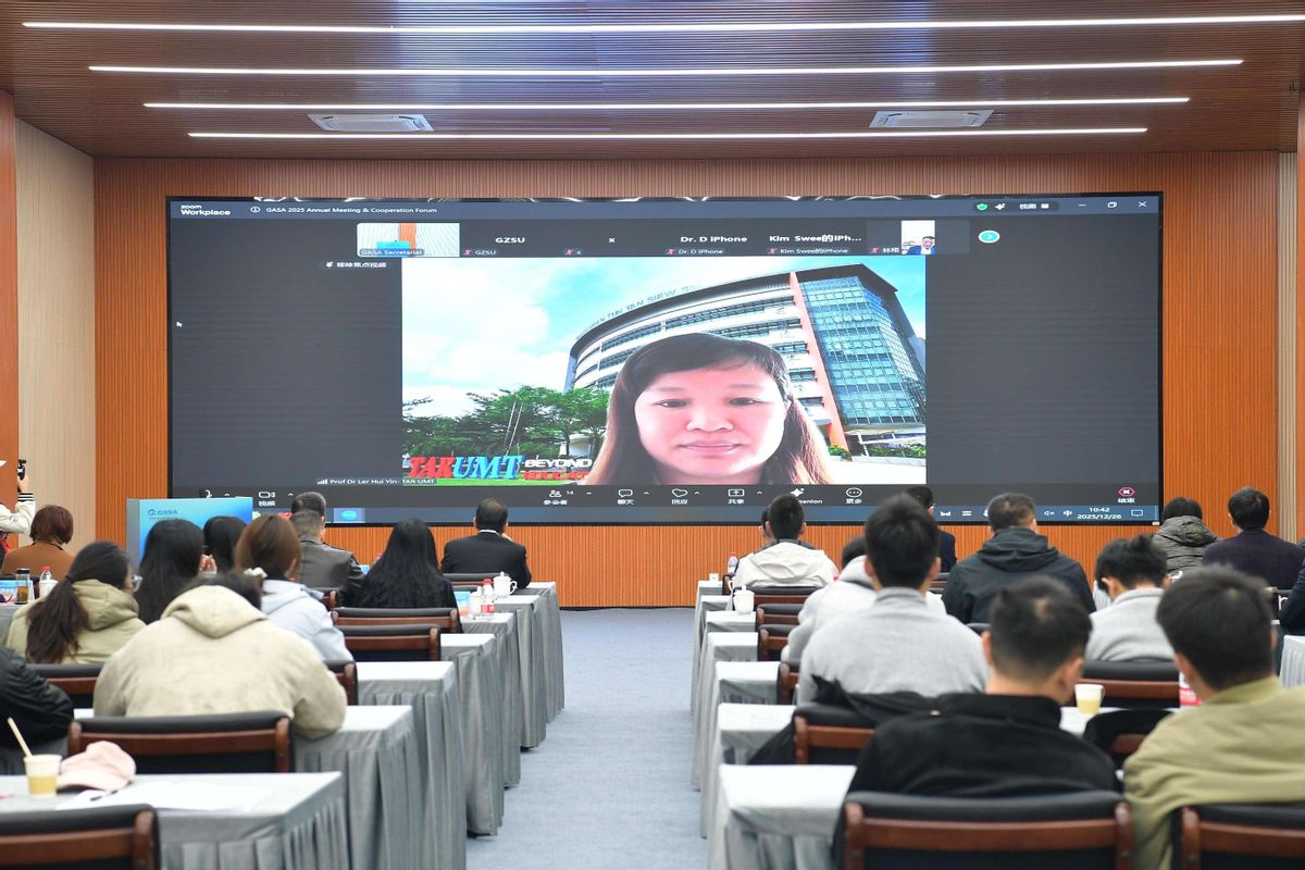 12月26日,粤港澳大湾区(广东)—东盟体育联盟(以下简称“联盟”)2025年会议暨“以体为桥 粤盟共赢”合作论坛在广州体育学院成功举办。会议旨在总结联盟成立以来的合作成果,规划未来发展路径,进一步发挥体育在促进区域人文交流与协同发展中的独特作用。会议及论坛采用线上线下相结合的形式,泰王国驻广州总领事沈勇俊(Kajtiti Wiwatwanont)、广州体育学院党委书记米银俊,粤港澳大湾区多所高校体育领域负责人,以及来自泰国、马来西亚、新加坡、菲律宾、印度尼西亚、柬埔寨等东盟国家的高校代表、体育协会负责人等参会。会议由广州体育学院副校长李裕和主持。