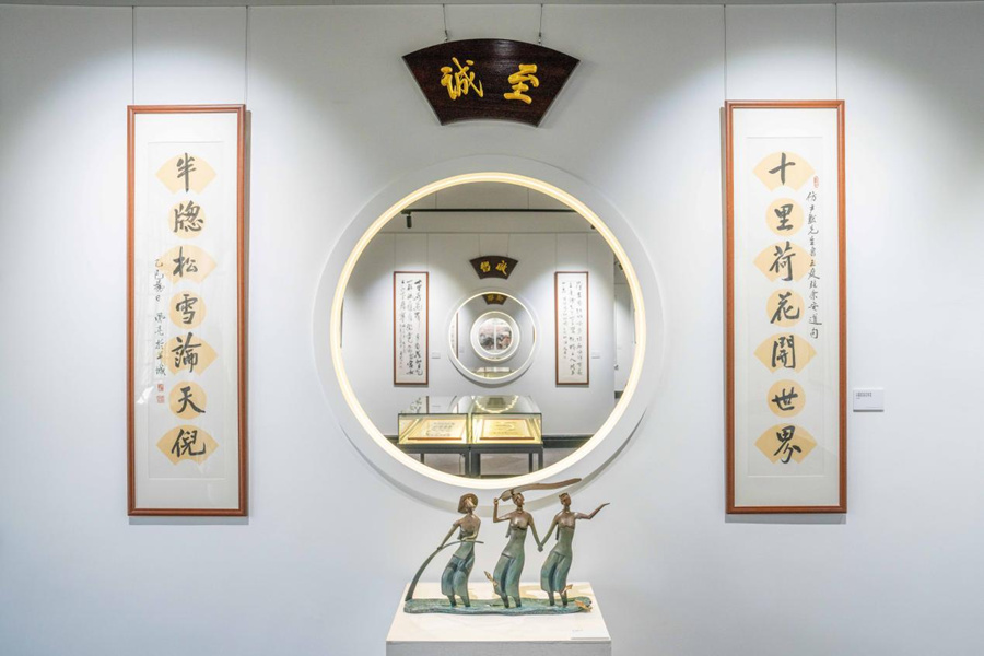 “最让我眼前一亮的是圆形‘框中框’设计的书画展示区,让静态的书画都带上了层次感。”人文与法学学院2025级汉语言文学专业的蔡同学在参观后分享道,“书画作品里的笔墨线条、花鸟意象,都让我感受到了中式艺术对自然、意境的追求。”