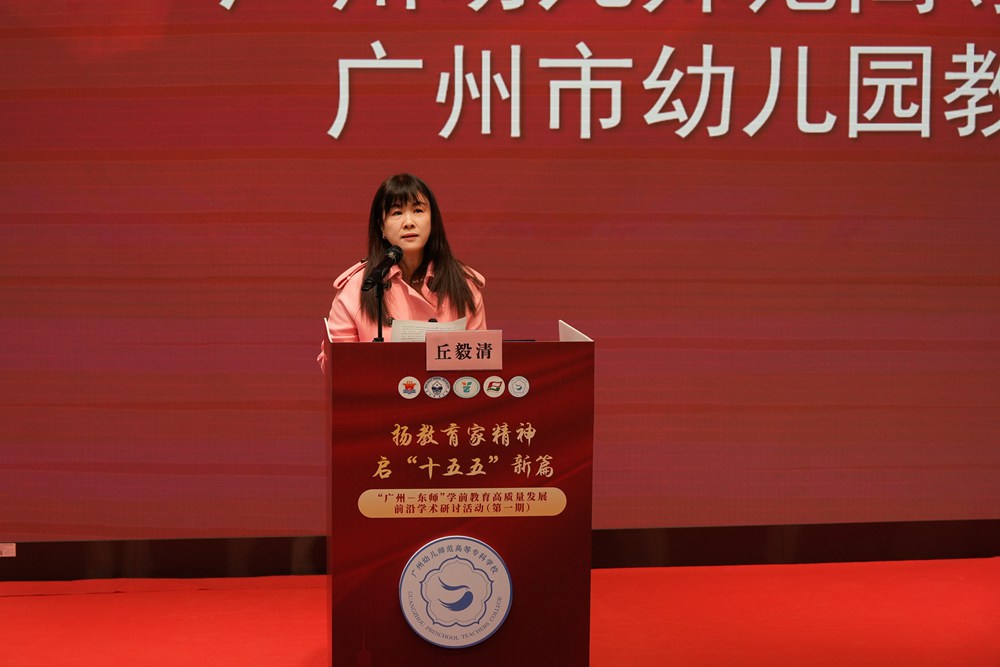 广州幼儿师范高等专科学校党委书记、广州市幼儿园教师发展中心主任丘毅清在致辞中表示,学校将全力支持广州市教育局与东北师范大学的战略合作项目落地,积极搭建交流平台,做好服务保障。