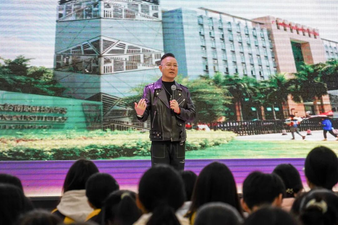 博雅报告厅内气氛热烈,学子们整齐落座,广东岭南职业技术学院执行校长李峻以“青年未来规划”为主题开展演讲。他亲切地以“峻哥”自称,结合自身思考生动讲解新时代青年如何规划职业、闯出精彩人生,并勉励同学们:“请你们一定记住,要做自己头顶的那盏灯,永远照亮自己,永远相信前方有光。路,永远在脚下,只要你敢走、敢往前,前途永远光明。” 整场分享以前瞻视野、科技质感与真挚情怀,深刻阐释了人工智能时代个体成长与职业发展的新范式。李峻富有感染力的讲述与极具启发性的观点赢得阵阵热烈掌声,现场反响热烈。