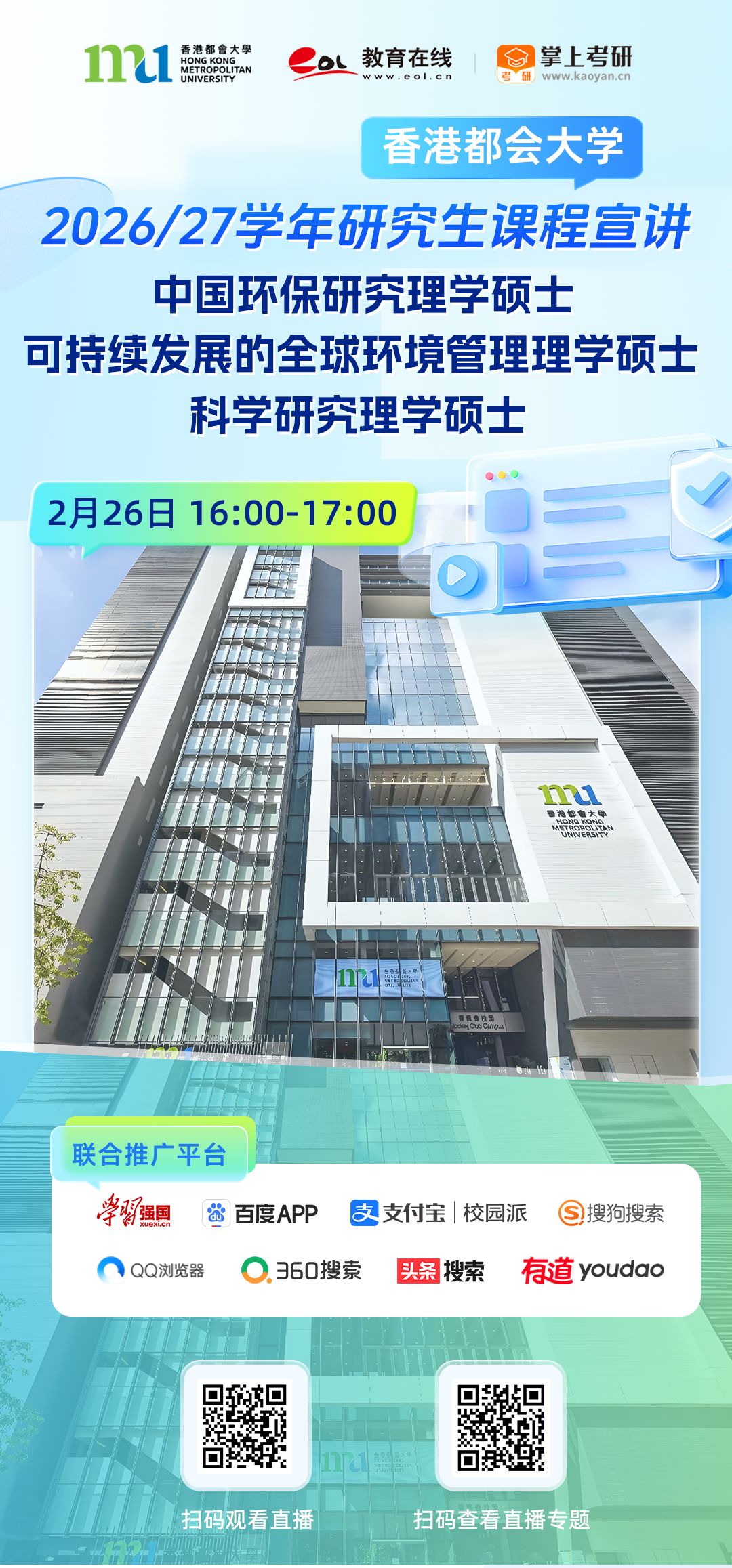 直播预告|2月26日,香港都会大学2026/27学年研究生课程宣讲——科技学院