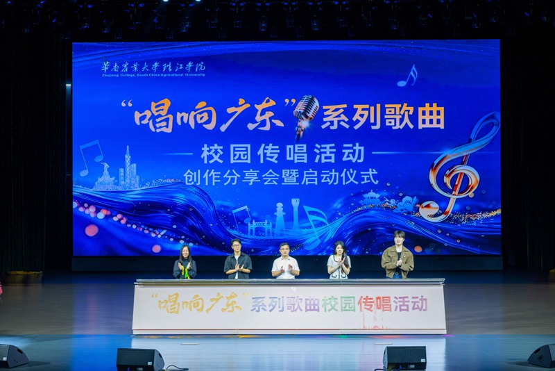 岭南三月,春意盎然,珠江之畔,乐韵悠扬。为落实学校以美育人、以文化育人的理念,传承岭南文化根脉,以音乐为纽带讲好广东故事、涵养青年学子家国情怀,3月20日,华南农业大学珠江学院举办“唱响广东”系列歌曲校园传唱活动创作分享会暨启动仪式。系列歌曲创作团队代表任钢、杨丹开展创作分享会,华珠副校长马雷猛、各二级学院党总支(副)书记,相关单位负责人以及学院师生代表共同参与活动,活动由校团委书记陈欣杰主持。