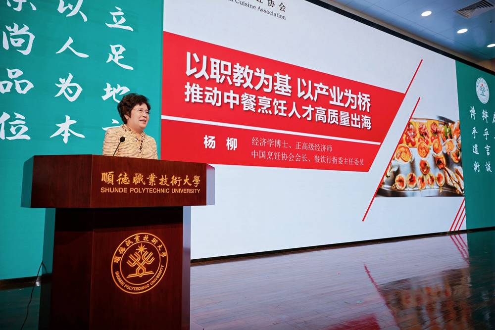会上,杨柳作“以职教为基、以产业为桥,推动中餐烹饪人才高质量出海”主旨报告,系统阐述中餐出海的时代背景、现实挑战与实践路径。她表示,当前中餐门店遍布全球180多个国家和地区,正由“走出去”向“走进去、走上去”的高质量发展阶段迈进。当前中餐出海面临五大核心挑战,一是复合型人才短缺,传统烹饪人才在海外食材适配、跨文化沟通等方面能力不足;二是标准化体系滞后,中餐工艺复杂、口味多样,与海外食品安全及运营标准对接不畅;三是品牌建设薄弱,行业呈现“小、弱、散”格局,缺乏具有国际影响力的领军品牌;四是跨境供应链体系不完善,冷链物流与中央厨房布局制约规模化发展;五是文化传播深度不足,中餐文化附加值未能充分释放。围绕上述问题,杨柳介绍了中国烹饪协会在搭建产教融合平台、拓展国际交流渠道、精准对接产业需求等方面的务实举措。她强调,未来需以培养兼具“中国根”与“世界眼”的国际化烹饪人才为目标,构建标准引领、品牌聚力、生态共建、文化塑魂的支撑体系,推动中餐烹饪人才高质量出海。中国烹饪协会将继续发挥桥梁纽带作用,以职业教育强根基、以产业协同促出海、以文化传播树形象,携手打造中餐烹饪人才培养新高地,让更多中华美食飘香世界,让中国工匠闪耀国际舞台。