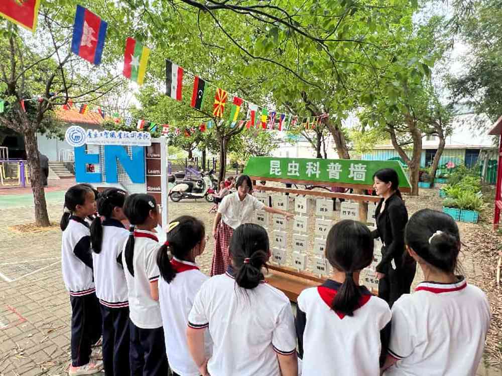 课堂上,教师第二党支部书记卫婷婷以贴近生活的主题为切入点,借助多媒体课件、实物教具等多元载体,通过情景对话、互动游戏、小组展示等形式,让乡村孩子在轻松氛围中感受英语学习的乐趣。学生们积极举手参与互动,用稚嫩却坚定的英语完成对话表达,切实提升语言运用能力。此外,授课团队还结合当地昆虫科普资源,在仁里村英语角开展“昆虫主题”英语情景教学,将科普知识与英语学习深度融合,既拓宽学生知识视野,又锻炼其英语表达与思维能力,实现“寓教于乐、学用结合”。