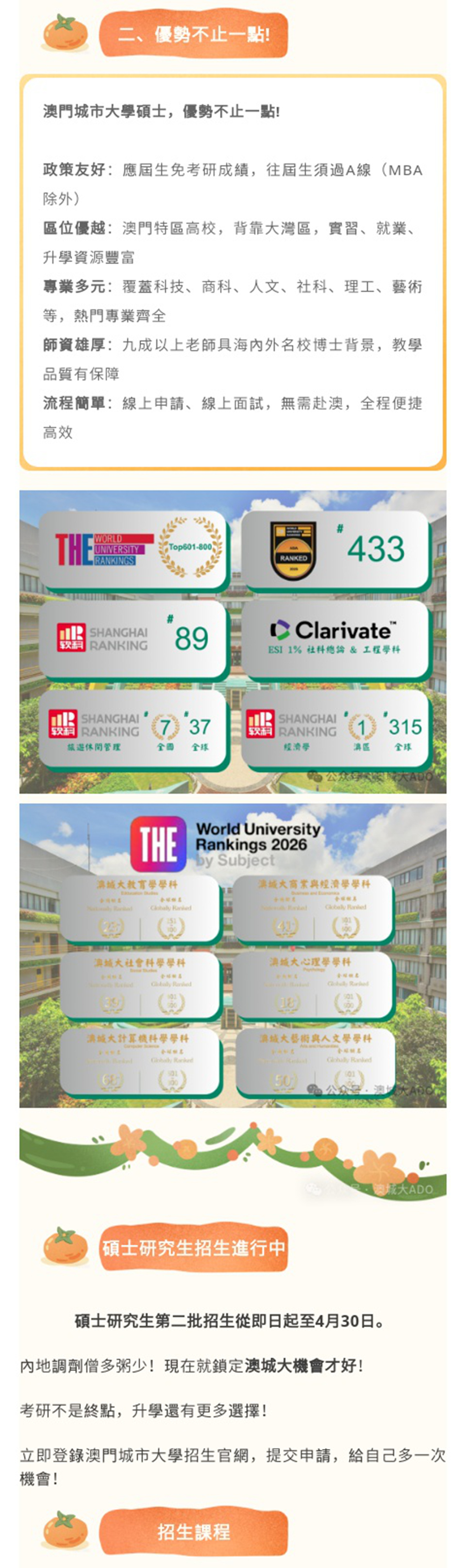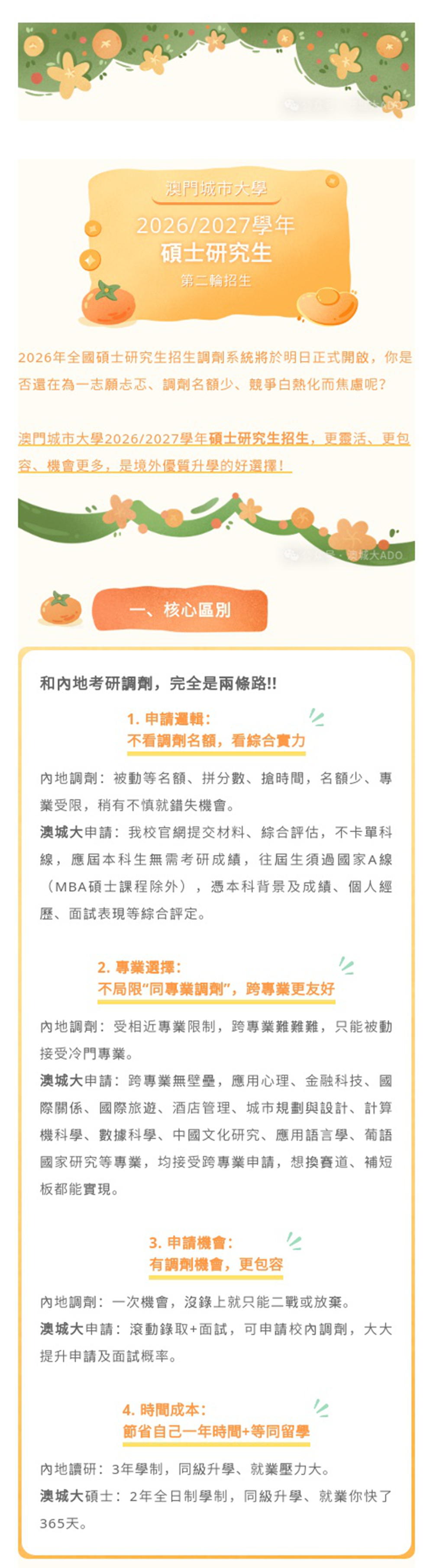 考研調劑有點緊張?別慌!澳門城市大學碩士研究生,給你另一條【快車道】
