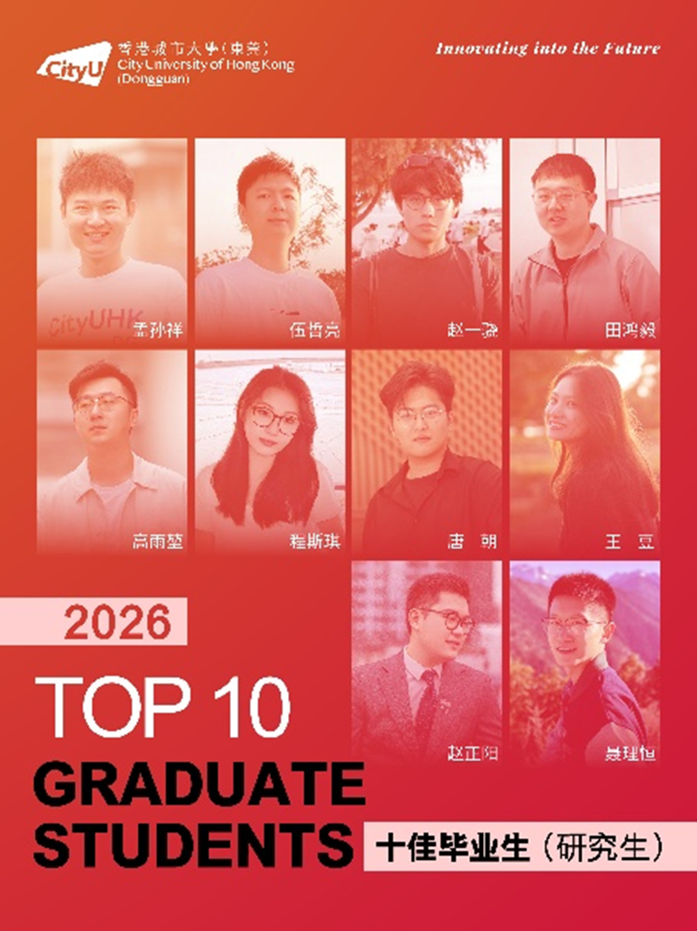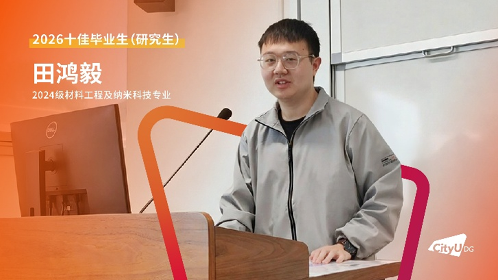 近日,经前期线上投票与现场评审,香港城市大学(东莞)2026年“十佳毕业生(研究生)”名单正式揭晓。这十张青春面孔用勇立潮头的姿态诠释了追求卓越的港城莞精神,他们是各自赛道上的探路者,更是港城大(东莞)“两校一质、教研合一、创新无限”办学理念的生动注脚。