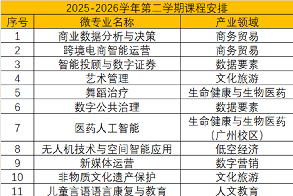 “校友微专业”项目第二期延续“小而精、专而深”的特色,课程设置紧贴校友实际需求与职业发展方向。免费开放的政策,体现了学校对校友的深情回馈,降低了学习门槛,让更多校友能够无忧重返课堂。课程体系多元,涵盖商业数据分析、跨境电商、智能投顾、艺术管理、舞蹈治疗等11大热门方向,满足不同领域校友的专业精进与技能提升需求。修完规定学时,校友可获得学校颁发的微专业证书,为职场增添助力。课程时间灵活,不占用工作日,便于校友平衡工作与学习。