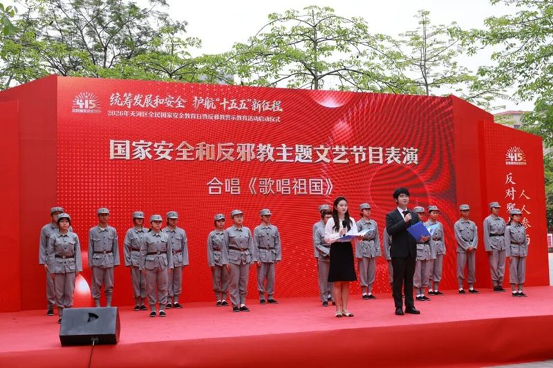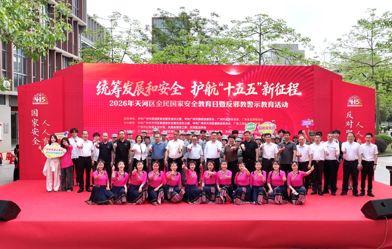 4月15日,为深入践行总体国家安全观,全面宣传国家安全法律法规,深化反邪教警示教育,2026年天河区全民国家安全教育日宣传教育暨反邪教警示教育活动启动仪式在广东工程职业技术学院天河校区举办。天河区委国安办、天河区委政法委、广州市公安局天河分局、凤凰街党工委、区国家保密局、区密码管理局、区司法局、区商务局、区卫生健康局、区退役军人事务局、区消防救援局、区反邪教协会、区法学会等部门领导和学校领导,以及该校300多名师生参加了活动仪式。