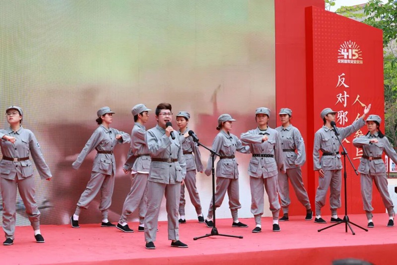 仪式上,师生代表集体庄严承诺,以铿锵誓言表达守护国家安全、自觉抵制邪教的坚定决心。前期面向广东工程职业技术学院征集的国家安全宣传微视频、主题宣讲优秀作品集中亮相并现场颁奖。在文艺节目展示环节,体现军民鱼水情的舞蹈《洗衣歌》,深情缅怀柯麟老校长、弘扬爱国情怀的歌曲《木棉树下的仰望》,展示民族团结的新疆歌伴舞《有那么一个地方》,师生合唱的《天下乡亲》等精彩节目轮番上演,文艺表演融合传统文化与时代精神,师生们将国家安全与反邪教理念融入艺术表达,引发全场强烈共鸣。知识问答互动环节气氛热烈,在场学生踊跃抢答,在趣味参与中巩固国家安全、反邪教警示知识。