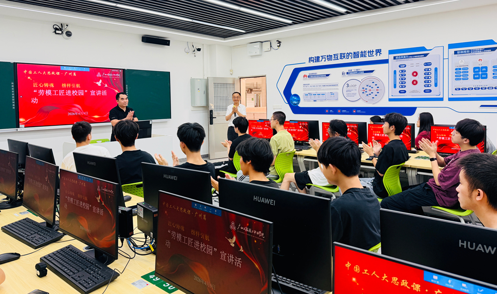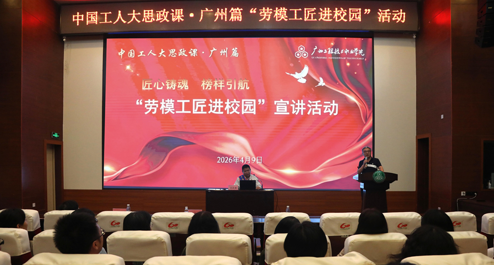 为深入学习贯彻习近平总书记关于大力弘扬劳模精神、劳动精神、工匠精神的重要指示精神,落实立德树人根本任务,探索新时代思政教育与劳动教育深度融合的实践路径,4月9日下午,广州工程技术职业学院在从化校区举行“劳模工匠进校园”暨“工匠林”建设活动,以“匠心铸魂 榜样引航 绿满校园”为主题,特邀多位国家级、省市级劳模工匠走进校园,通过主题宣讲、现场教学、植树育林等多元形式,将榜样力量、工匠精神与实践育人深度交融,为师生献上一堂兼具思想高度、专业深度与实践温度的“大思政课”。