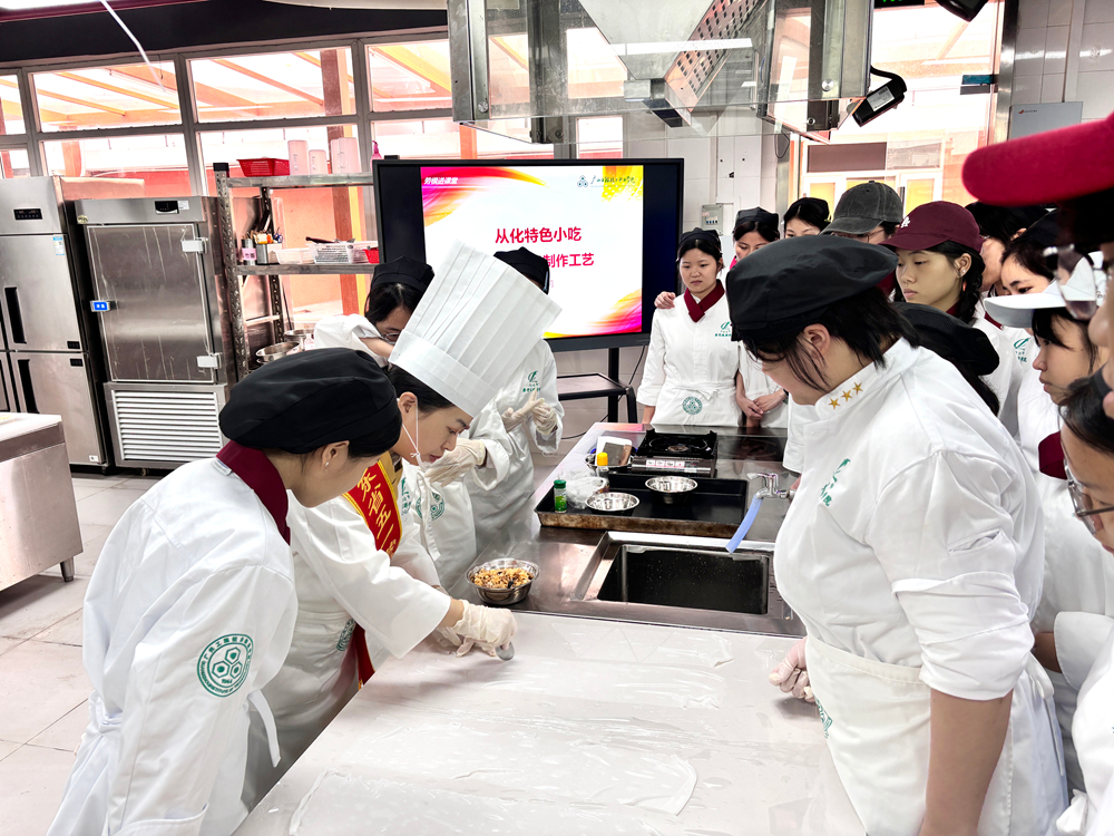 省五一劳动奖章获得者、省技术能手、学校餐饮智能管理专业带头人冯莉现场示范从化特色小吃粉包制作